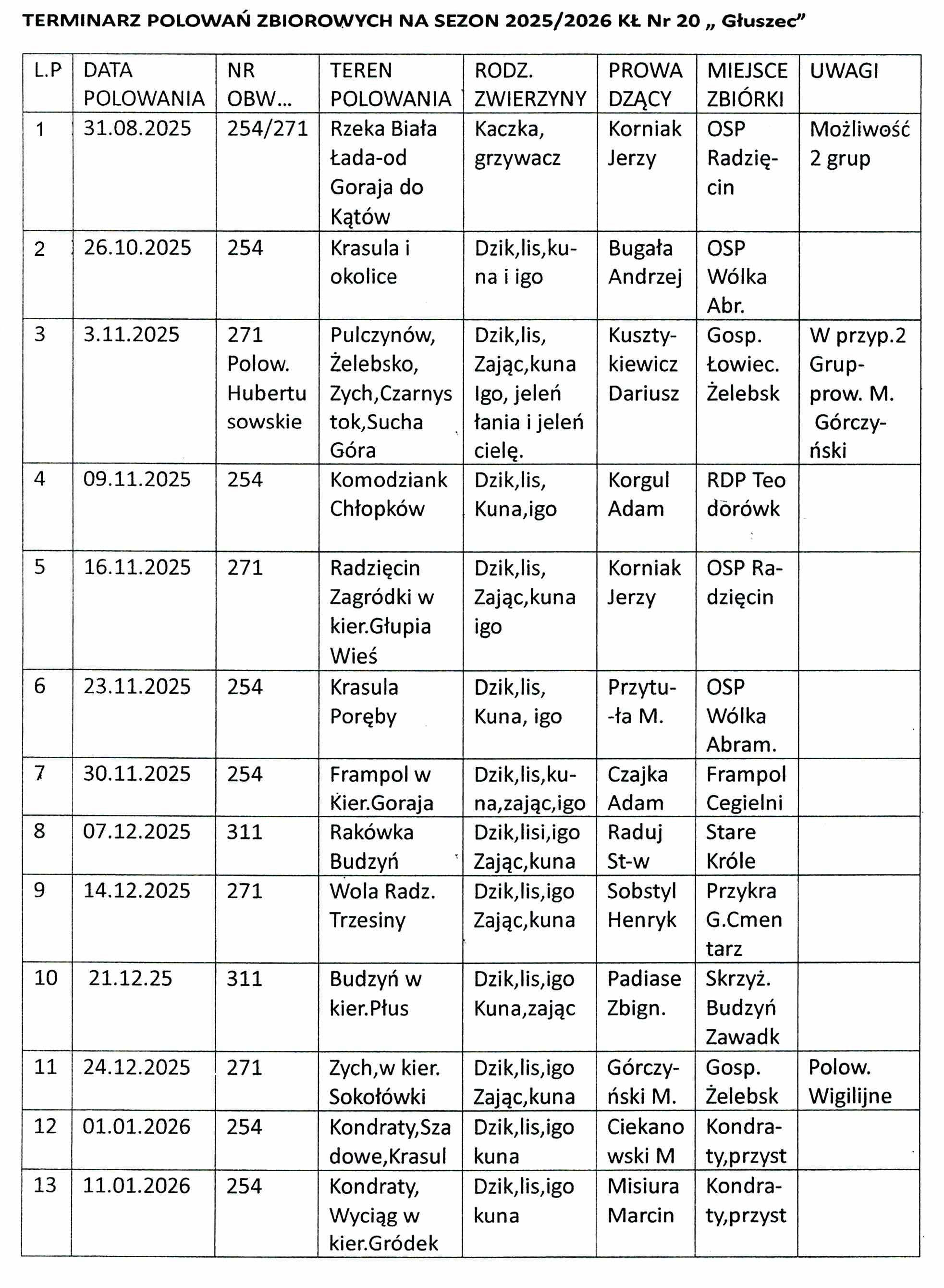 Plan polowań zbiorowych 2025/2026